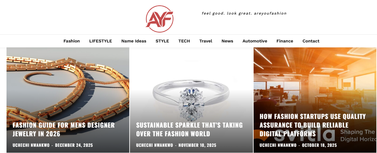 AreYouFashion.com carries a friendly, approachable vibe, with the tagline “Feel Good, Look Great” consistently reflected across its pages. This messaging signals that the site prioritizes confidence and self-expression over following strict fashion rules.