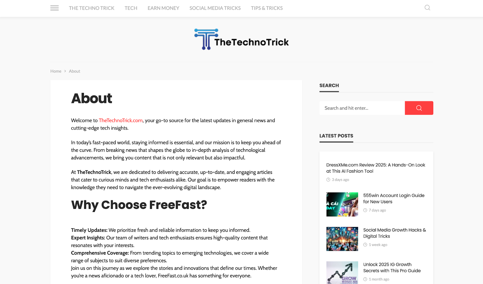 TheTechnoTrick.com functions less as a true publication and more as a content platform built for search algorithms. It fills space with accessible material but leaves key questions unanswered about who writes, edits, or verifies the content.