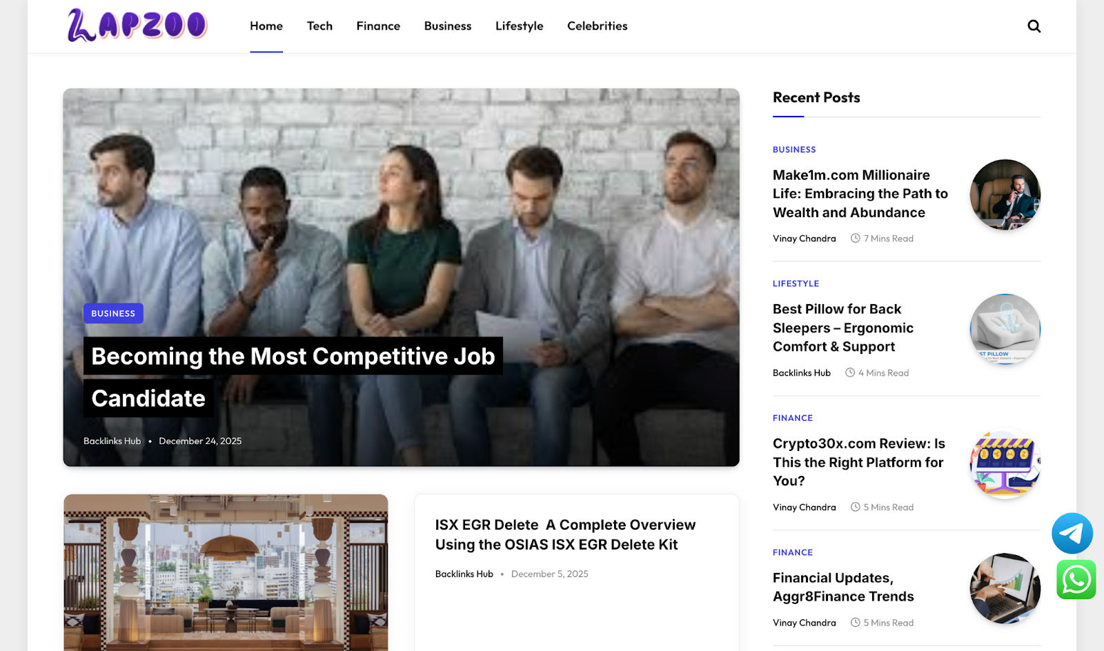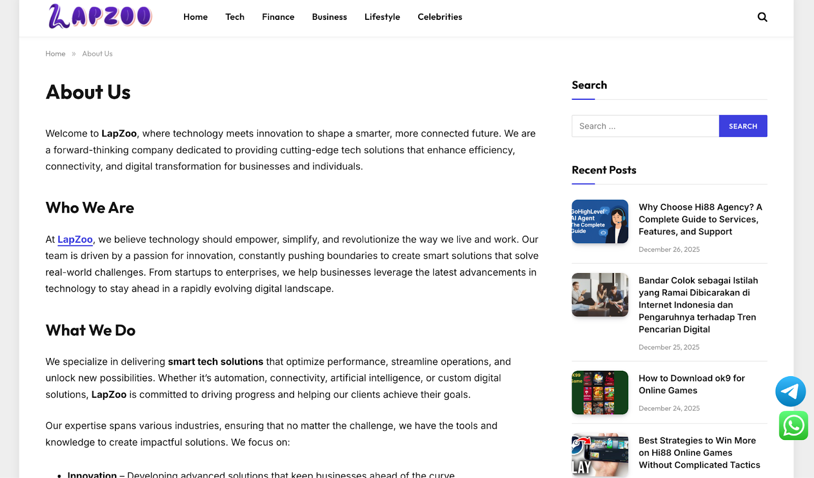 LapZoo.com presents itself as a busy, multi-category publishing site. New posts appear frequently, topics rotate fast, and the homepage is dense with links. On the surface, it looks active and alive. This article does not repeat earlier critiques about “thin content” or “SEO farming” in the usual way. Instead, it looks at how the site is built, how it behaves over time, and what those behaviors imply about intent, reliability, and risk.