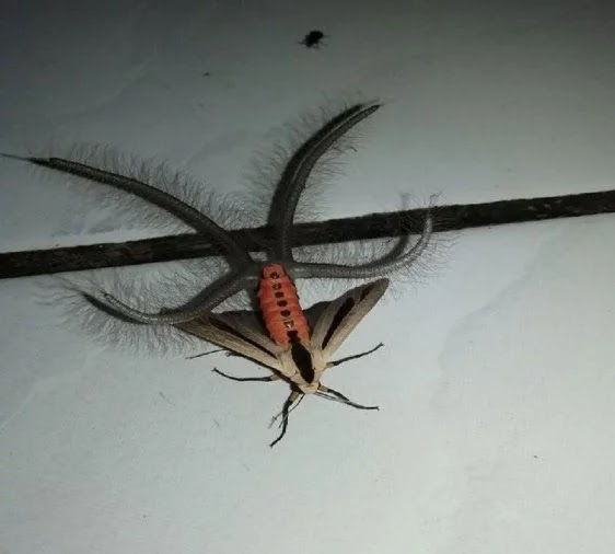 क्रिएटोनोटोस गैंगिस है यह देखने मे बहुत शान्त है लेकिन इसका नारंगी शरीर और पीछे निकली नुकिली पूंछ पर बालों का गुच्छा है जो इसे और डरावना बना रहा है इसी वजह से यह कीट चर्चा का विषय बना है |